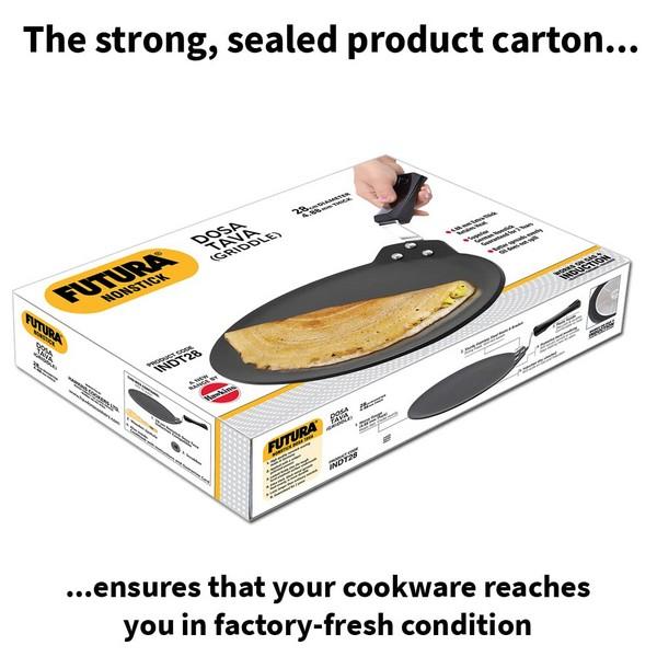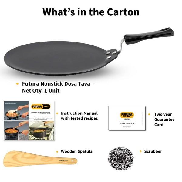 Hawkins presents this Futura NS Dosa Tawa which is an essential pick for preparing crispy dosas, tender omelettes and healthy rotis. Made of heavy-gauge, aluminium material , this tawa is remarkably durable with consistent heat distribution for uniform results. This smooth black tawa is rendered with non-stick coating for easy release of food without sticking to the surface. Designed with a non-induction base, this Hawkins Futura NS Dosa Tawa is compatible with gas stoves . Complementing the Indian kitchen, this tawa is perfect for preparing all staple foods such as parathas, bread, pancakes and many more.