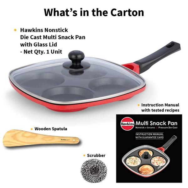 Die casting is a metal casting process, whereby metal is heated to a very high temperature and poured under high pressure into a mould cavity. The molten metal takes the shape of the mould and the result is a complex, intricately designed pot or pan which adds the metal where it is needed the most, building strength and functionality. Once the molten metal hardens, the mould is opened and the die cast pan is removed. It is then finished by a PFOA free long lasting nonstick coating on the inside and ceramic coating on the outside. The final result is a finely engineered piece of cookware with wonderful properties for cooking. Ideal for dishes such as Onion Uttapam, Tomato Uttapam, Pancake, Besan Chilla, Vegetable Rava Patties, Fried Eggs, Masala Omelette, etc. Use only wooden, heat resistant nylon or silicone spatula (do not use metal). Suitable for use on gas, electric, ceramic and halogen.