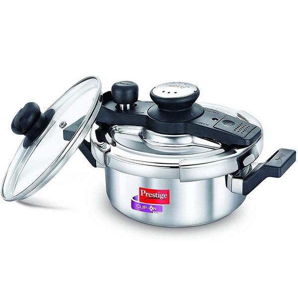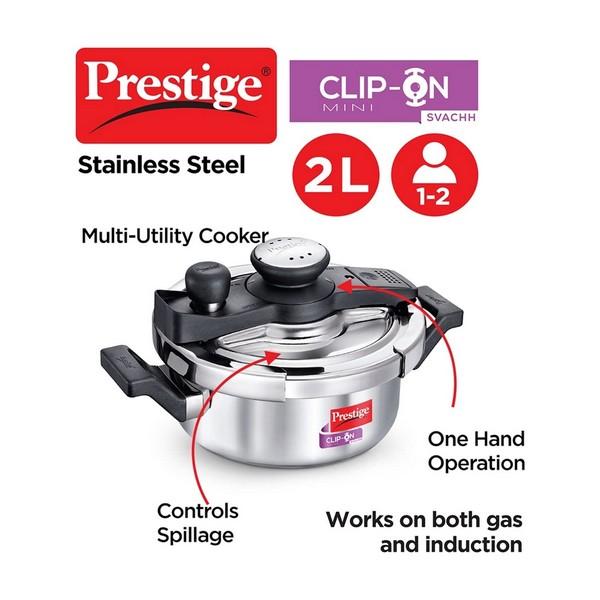The Prestige Clip-On Svachh pressure cooker range is modular in design, which means you can use the same lid on all utensils in the range.