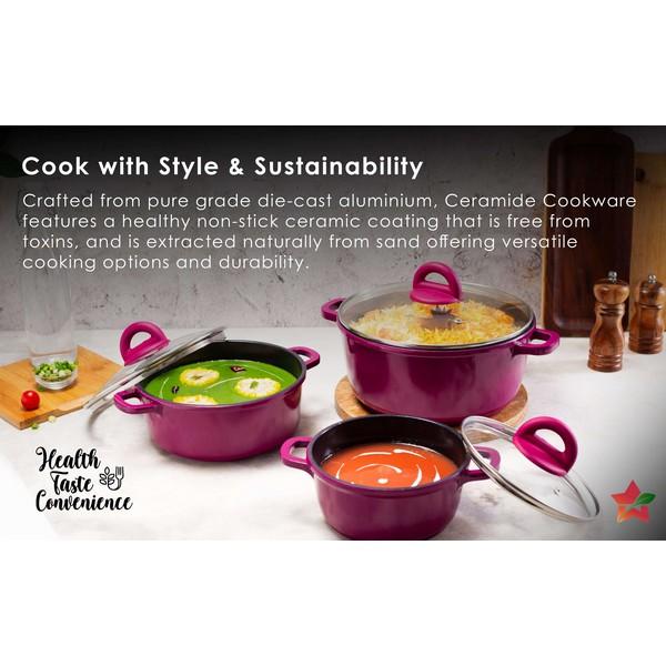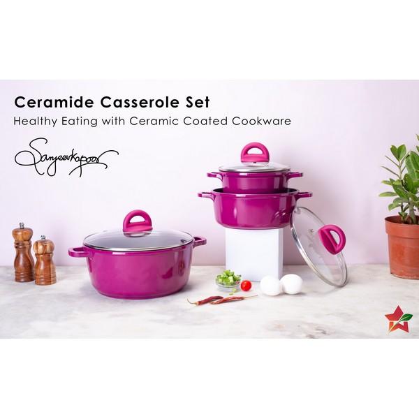 Wonderchef Ceramide Die-cast Casserole Set (Pink)