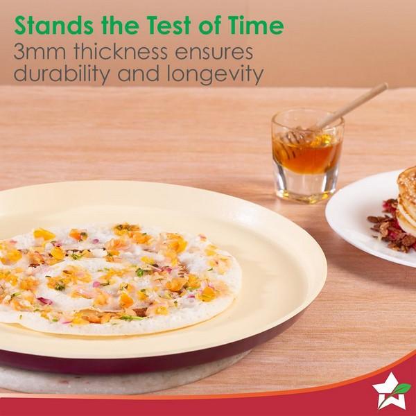 Bellagio healthy non-stick Dosa Tawa is made from virgin aluminium, which is a 9 times better conductor of heat compared to stainless steel; thus enabling you to cook evenly and quickly.