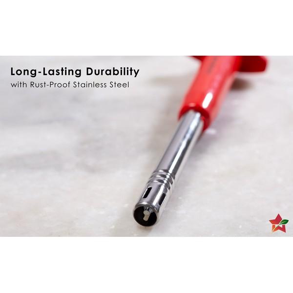 Made of anti-rust stainless steel. Long lasting and unbreakable with a soft & long grip. Designed for safety and convenience, this igniter features a comfortable grip and a long reach, making it easy to ignite your stove without getting too close.
