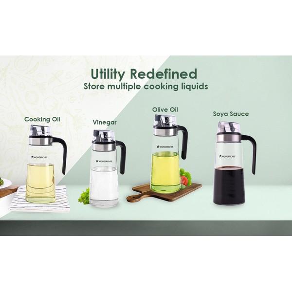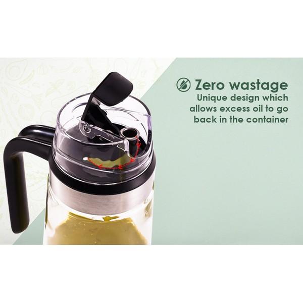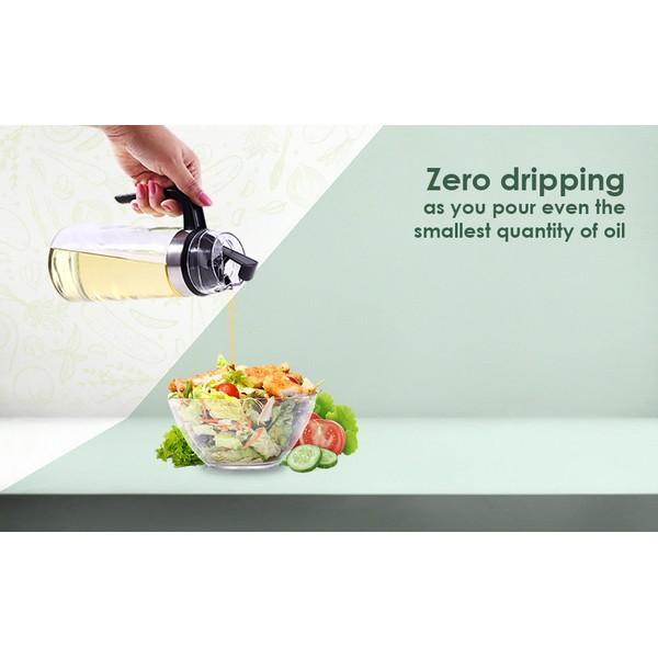 Pours oil accurately without wastage. Makes using oil a no-mess job. Special spout design. Wide mouth enables easy cleaning and unique non-slip handle offers firm grip of the bottle. Glass bottle for best possible hygiene & food safety.