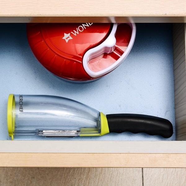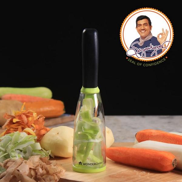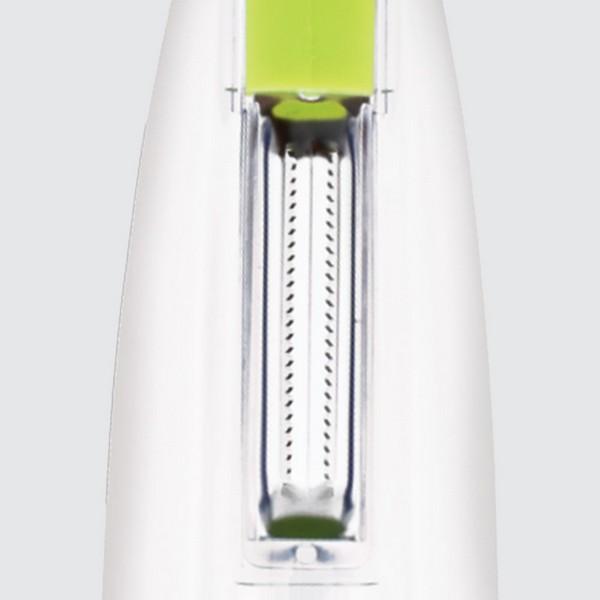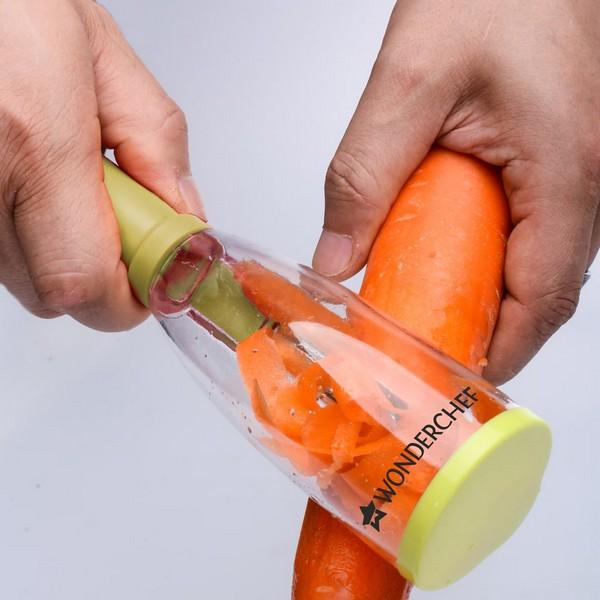 Peels carrots, cucumber, potatoes, fruits and more without any mess. Built-in container to collect vegetable and fruit skin. Non-corrosive, rust free and sharp blades.